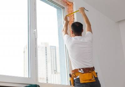 - Монтирует откос, герметизирует швы.