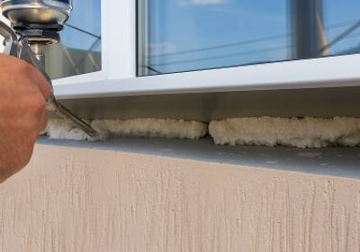 - Подготовка поверхности. Очищаются остатки монтажной пены и загрязнений, при необходимости основание выравнивается и обезжиривается для надёжного сцепления.